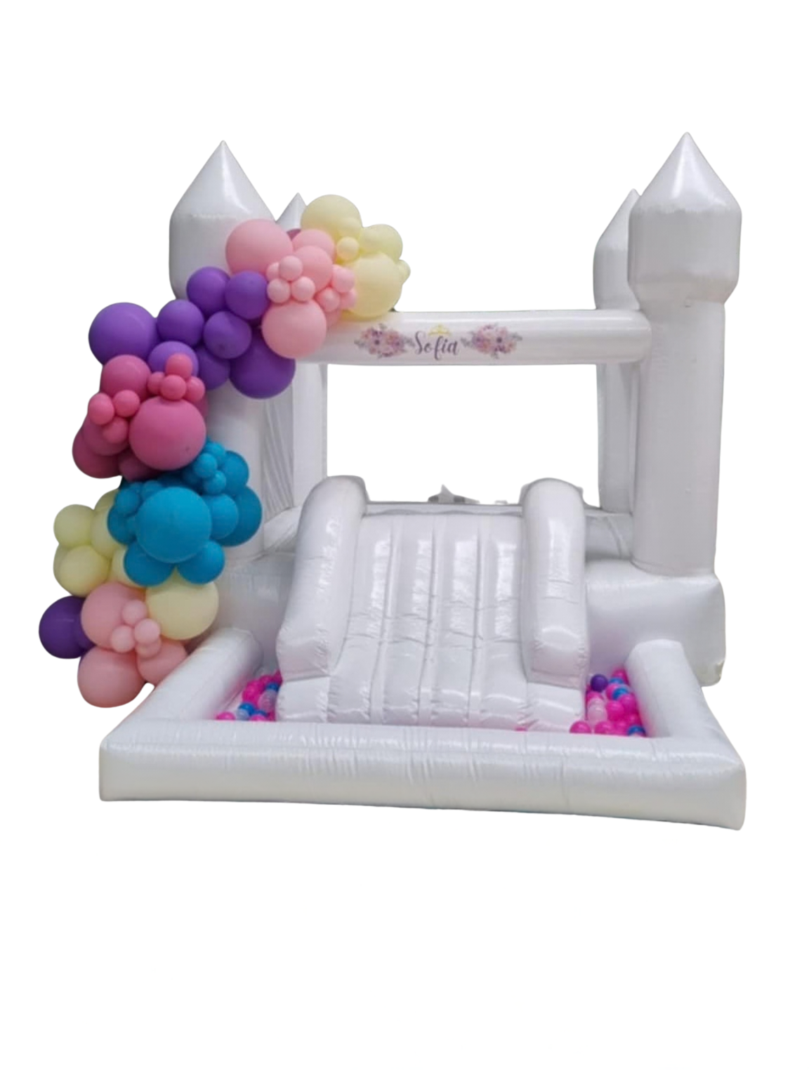 Our all white jumping castle is ideal for any children's events, weddings, parties or even just some backyard/indoor family fun. Add ocean balls or a balloon garland to customise to your theme.